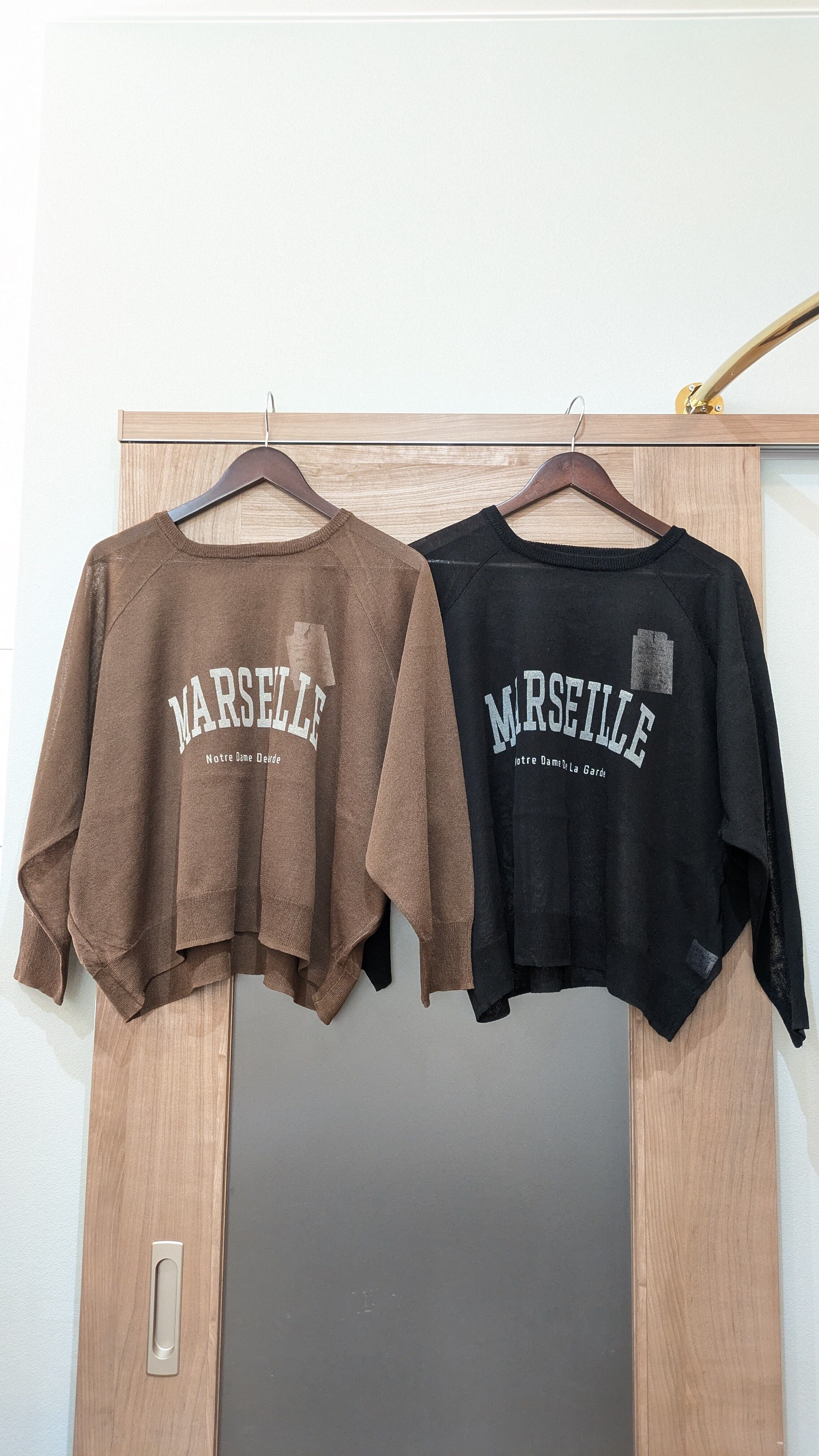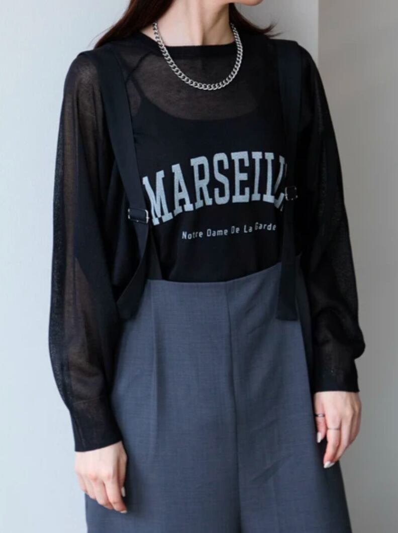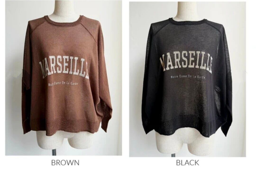 透け感のあるシアーニットにロゴをプリントしたプルオーバー。ラグランスリーブでゆったりとした大きめのサイズ感がこなれ感を演出してくれます。
