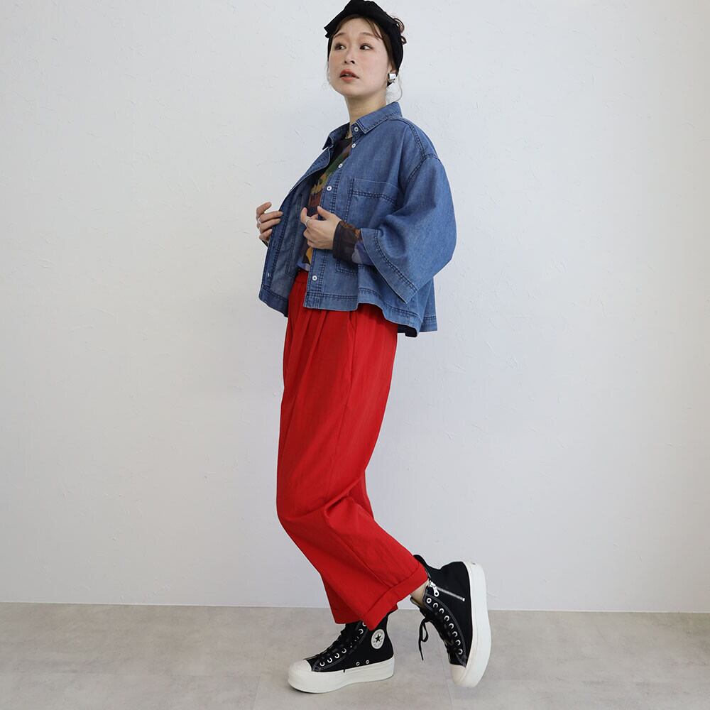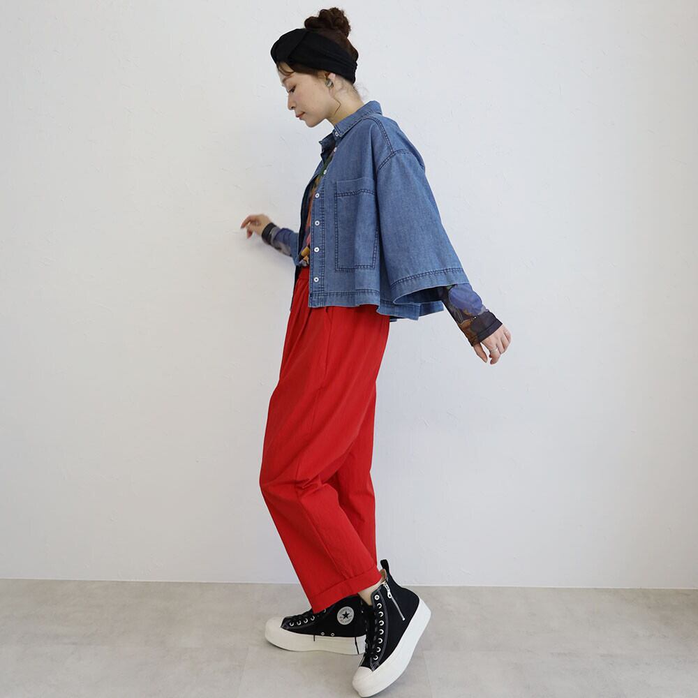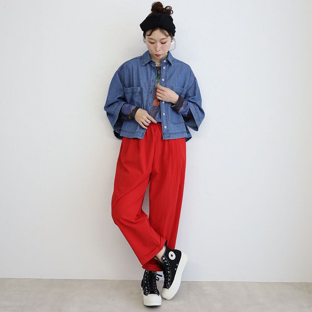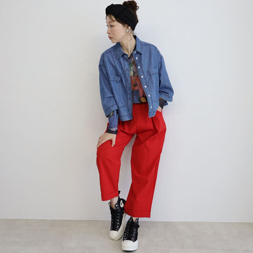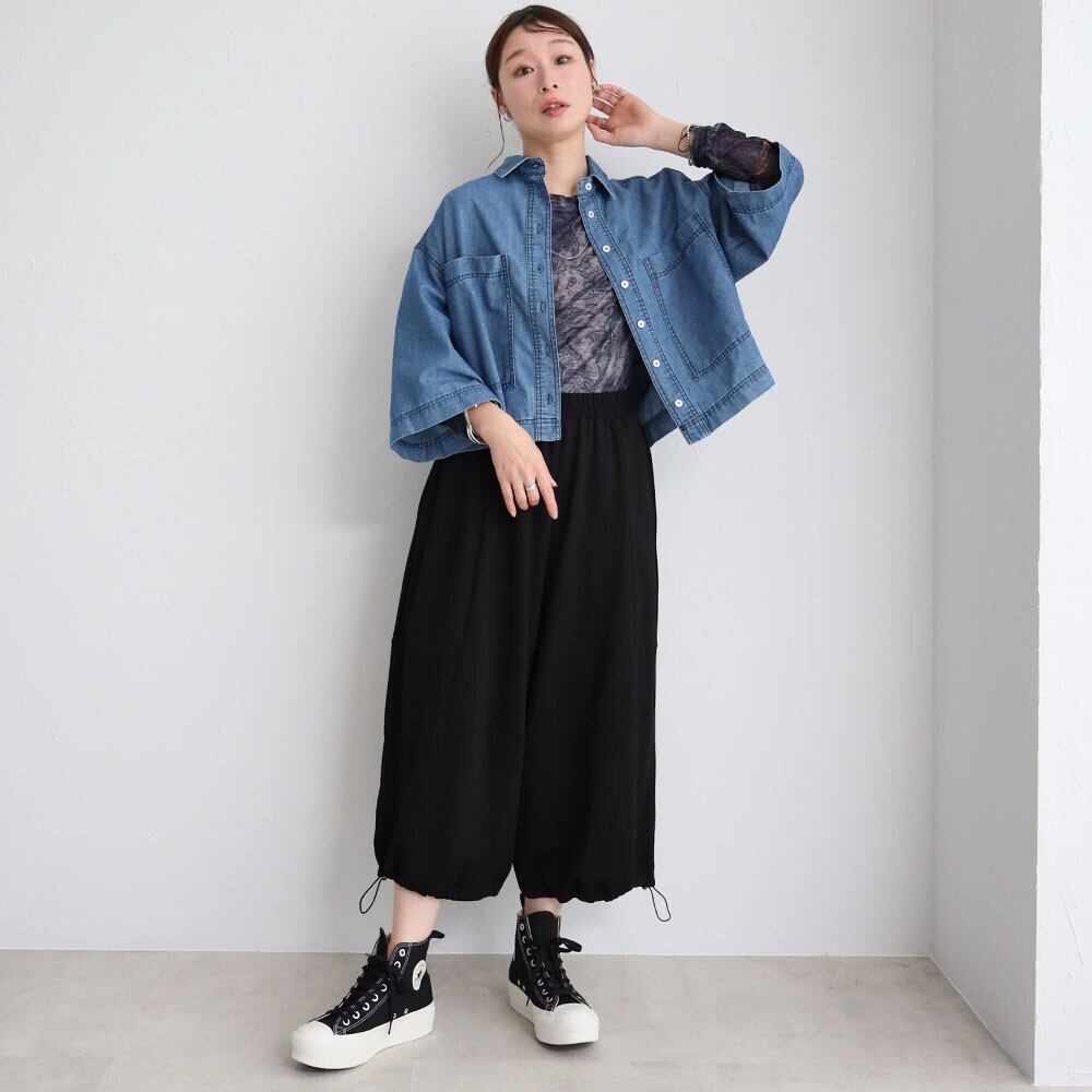 人気のショート丈シャツが人気のデニム素材で登場♪最強の組み合わせ!サラッとした素材で羽織った時から気持ち良さ抜群!絶妙な着丈はオシャレさんには必須アイテム!大きなポッケが可愛い一押しアイテムです
