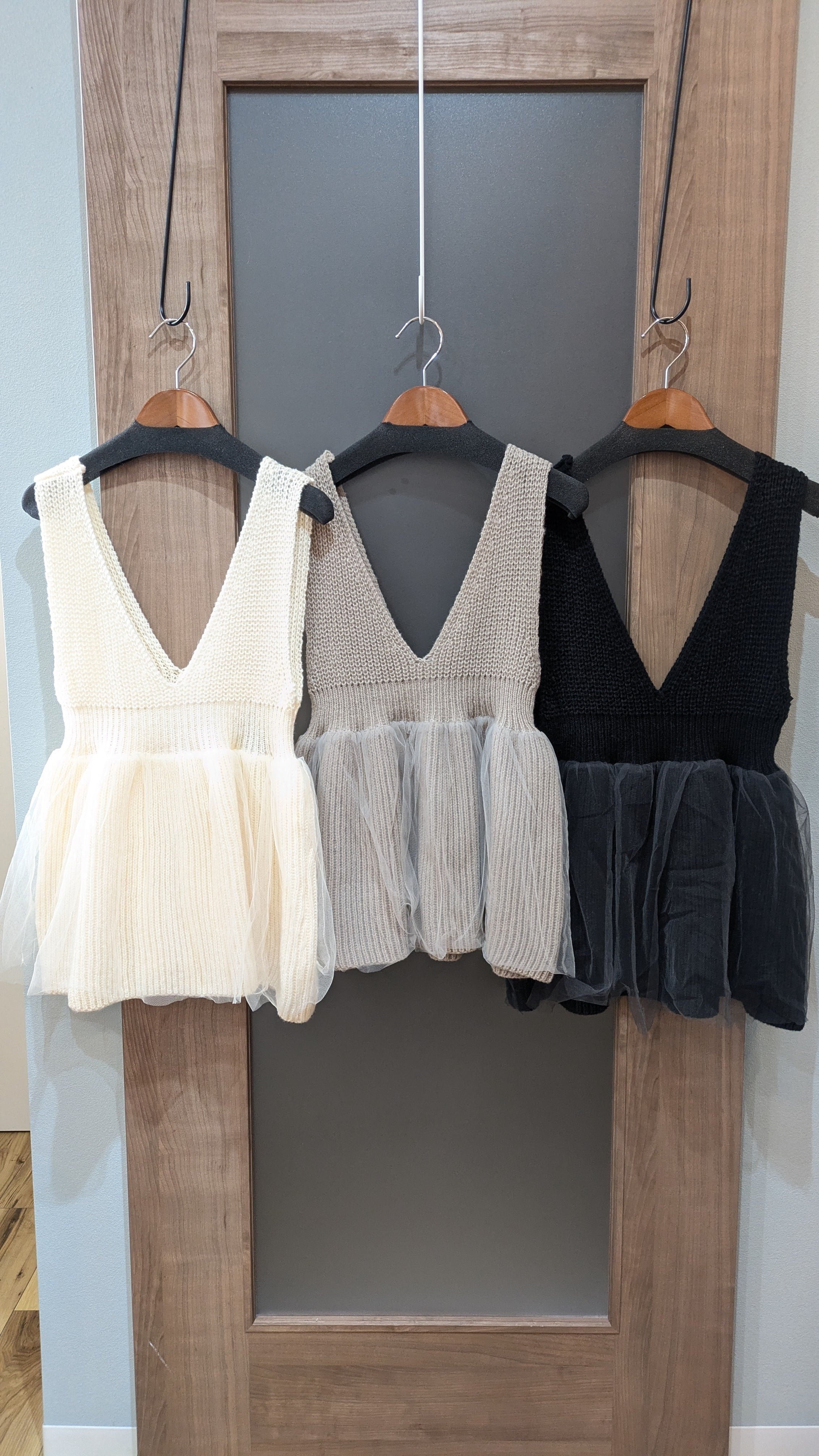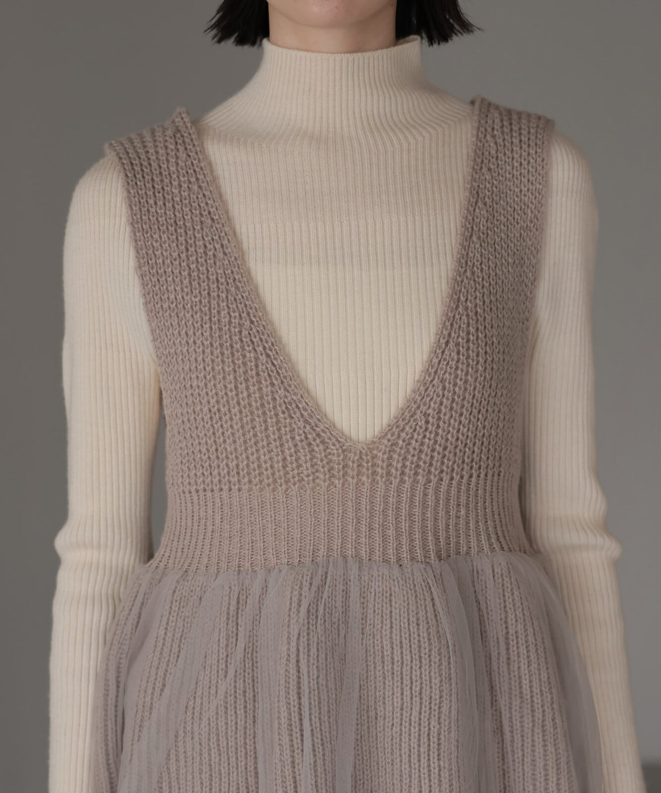チュール付きVネックペプラムニットベスト
