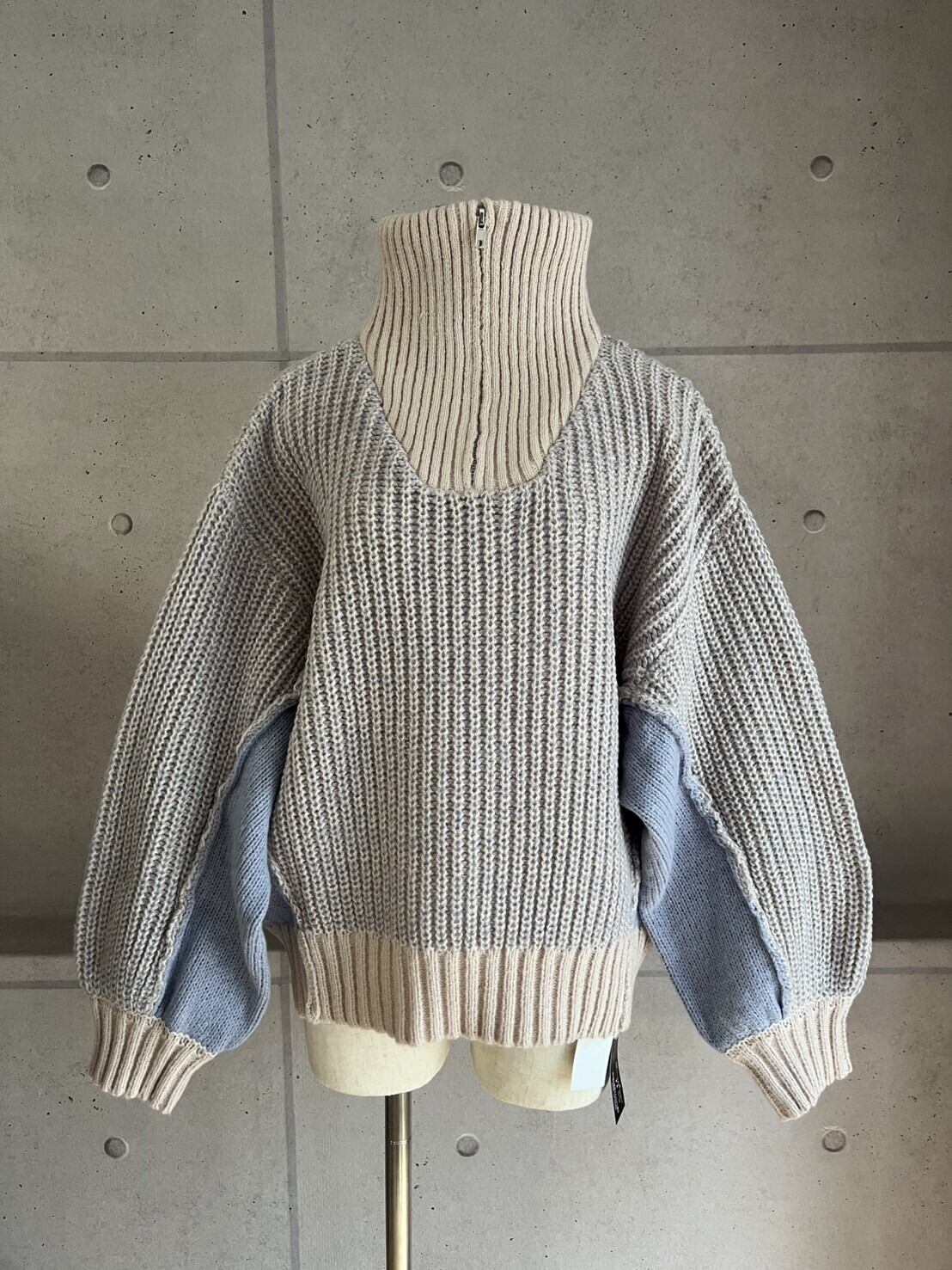 トレンドのハイネックのジップ付きニット。ミックスと無地の糸を組み合わせたドルマンスリーブのゆったりとしたシルエットが魅力的。ふわっとした柔らかな肌触りで、着心地抜群。スポーティーになり過ぎない、旬のアイテムです。
