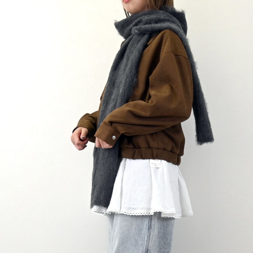 ※評判のモヘアタッチニットの風合いも魅力、程良いボリューム感のシルエット!フード付きマフラーがシンプルなトップスと合わせるだけで主役級の存在感を発揮します。!!