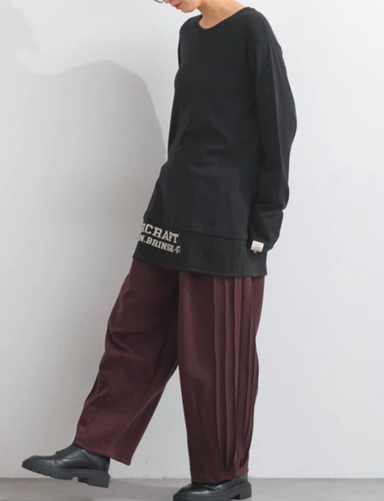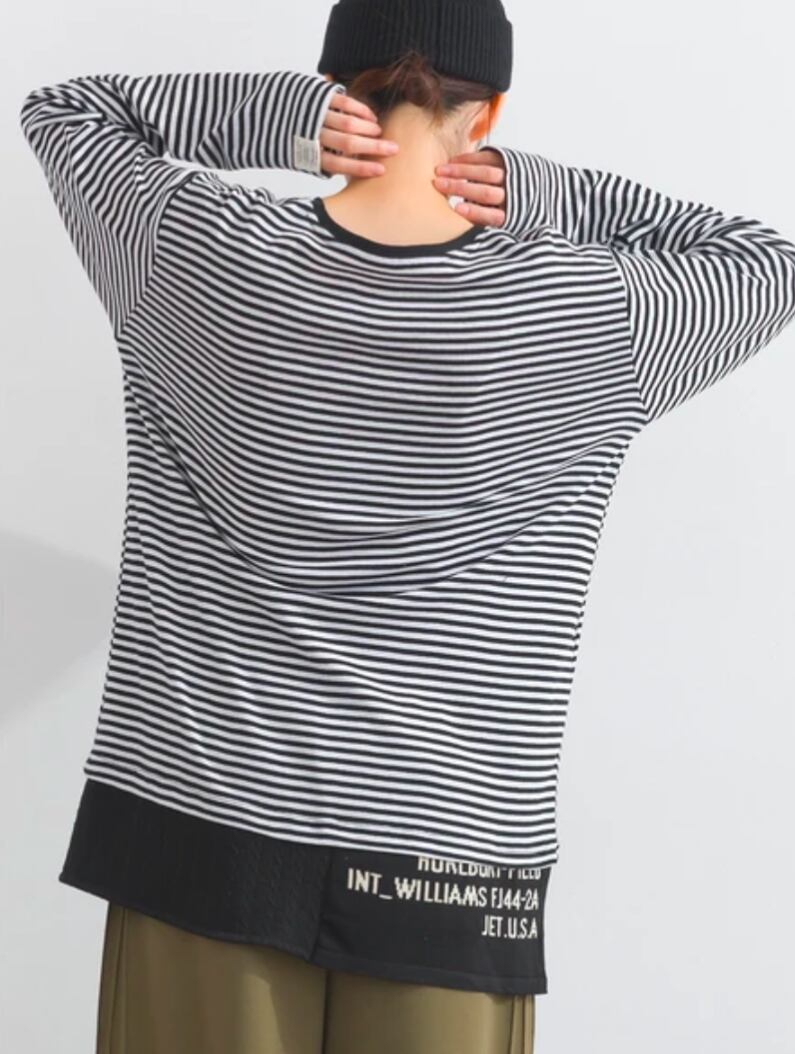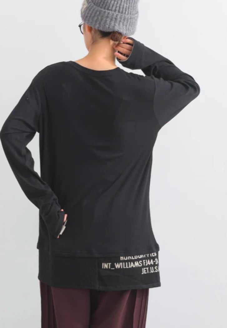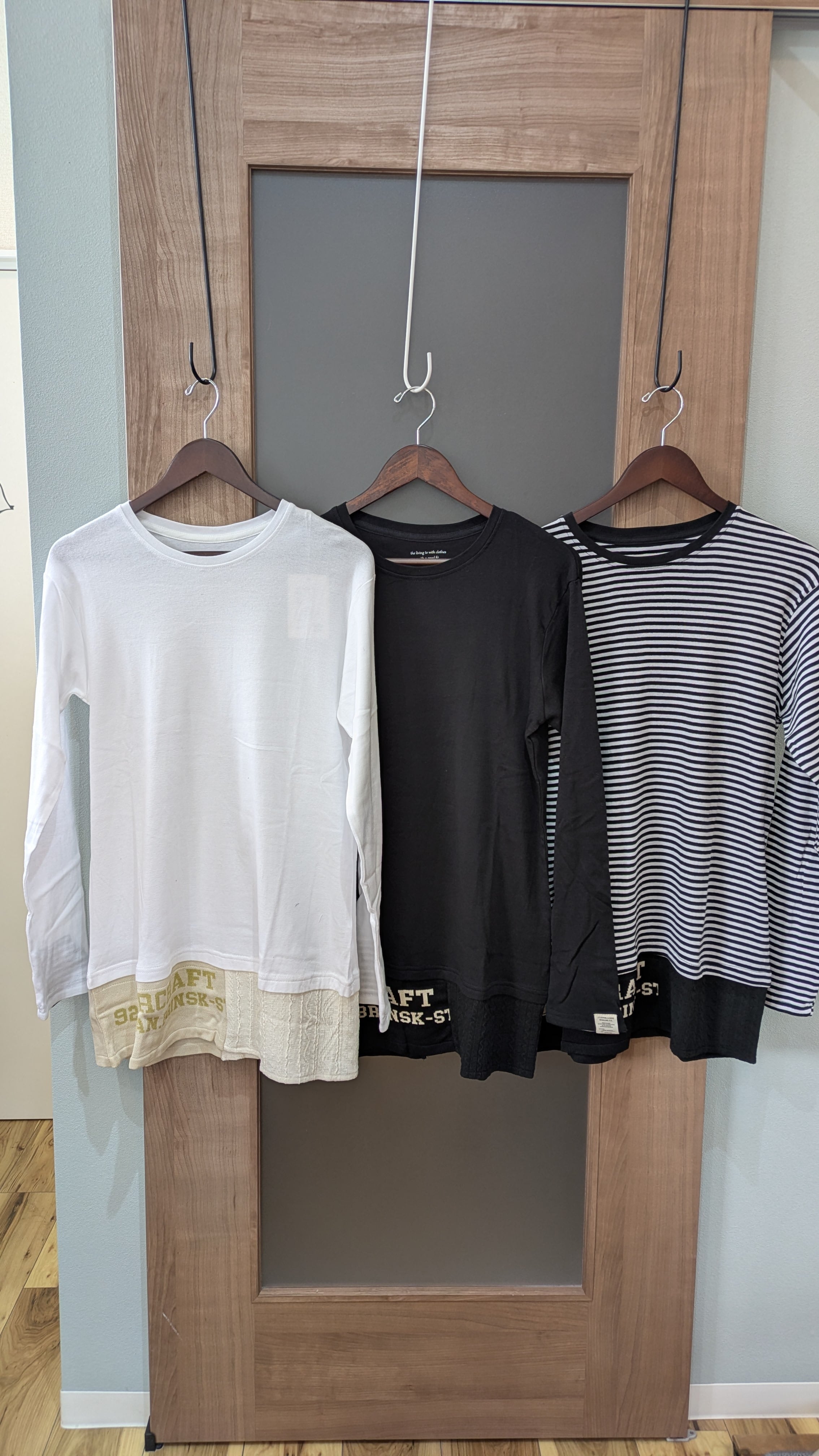 裾 ジャカード ニット 切り替え 30/- フライス 長袖 Tシャツ
