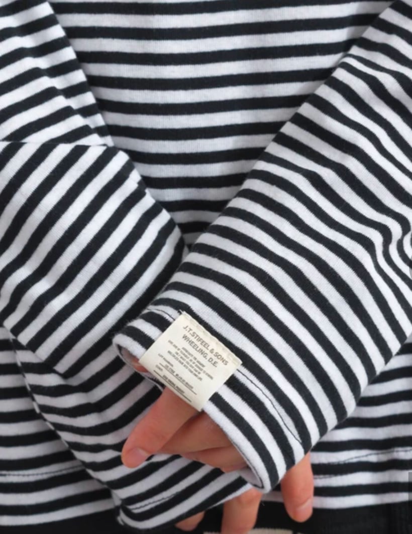 袖にはピスネームが施され、カジュアルながらも細部にこだわったアイテムです。