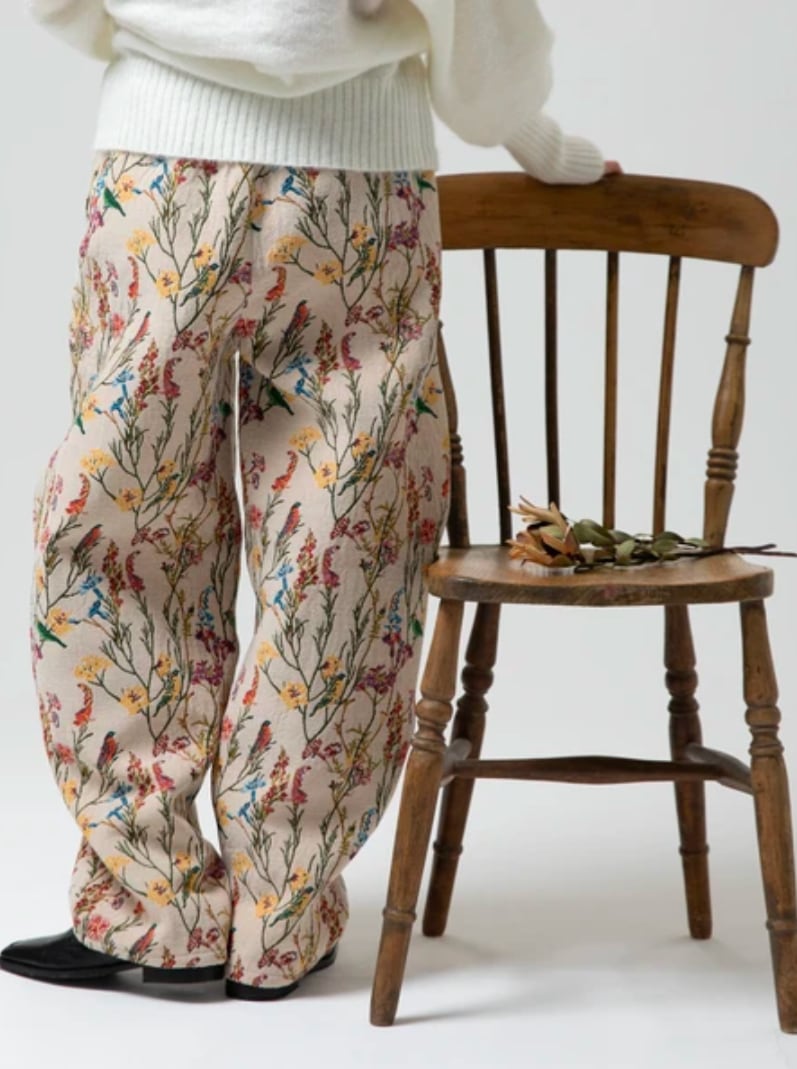 【Design】クラシカルなゴブラン織り生地を贅沢に使用した、個性とトレンドが光るカーブシルエットパンツです。普段のコーディネートを一気に華やかに格上げしてくれます。
