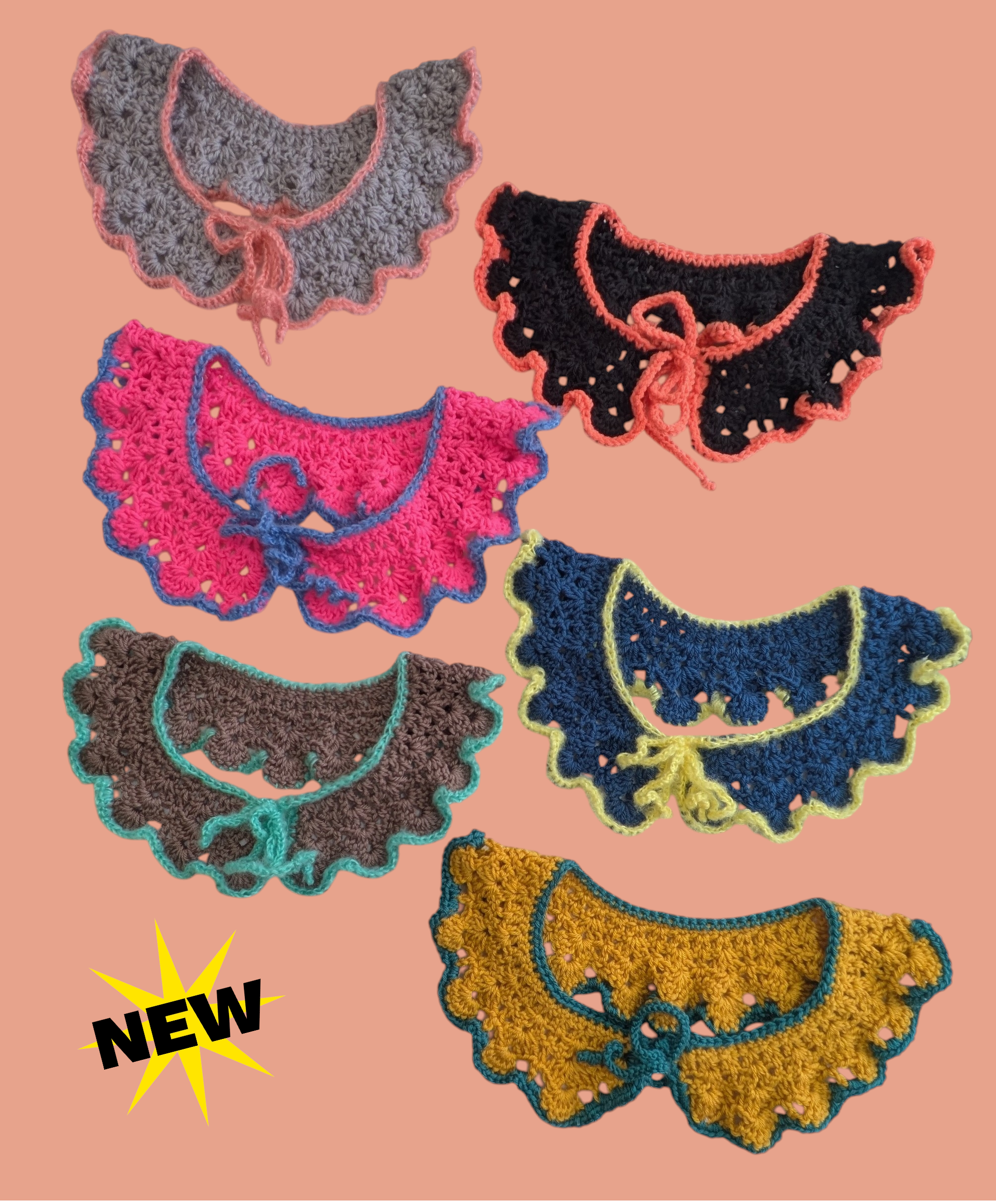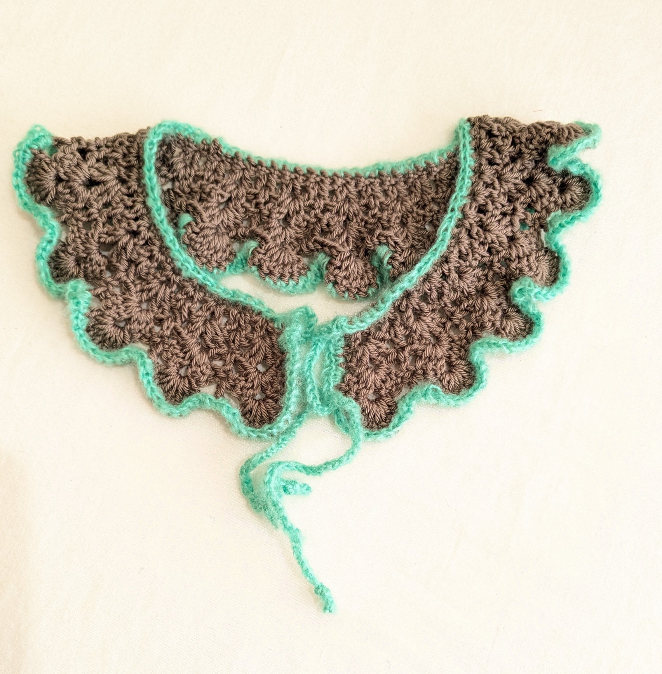 【Design & Feature】カラフルな毛糸を使用したユニークなつけ襟です。色とりどりのデザインがまとうことで、シンプルなコーディネートにアクセントを加え、遊び心を引き立てます。