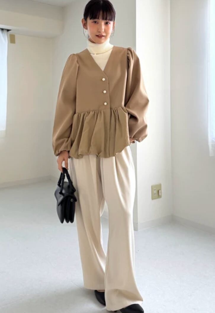 バルーンのようなふわっとした裾で気になるポッコリお腹をカバーしてくれます◎ペプラム風のデザインで切替部分でウエストマークされるので自然にスタイルアップが叶うんです♡