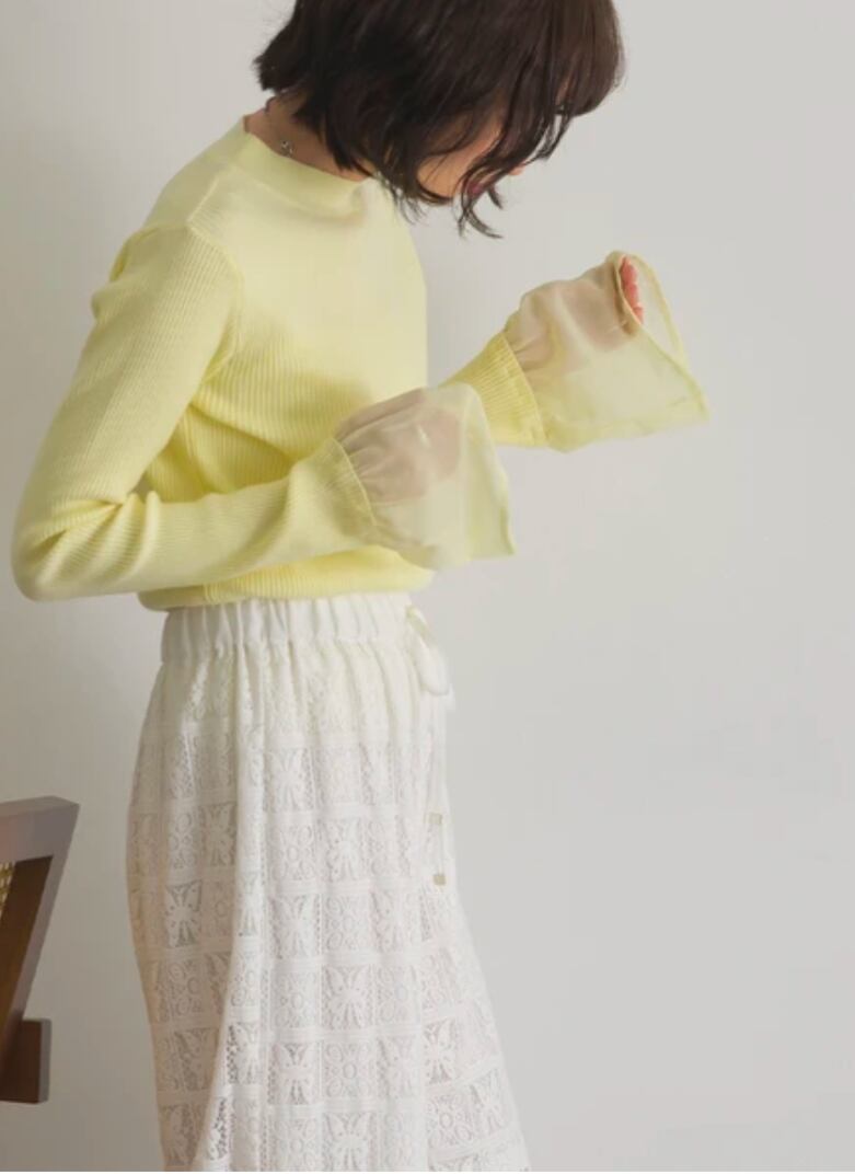 シアー フレアスリーブ ハイネック ニット プルオーバー 12GG【2026年春新作】