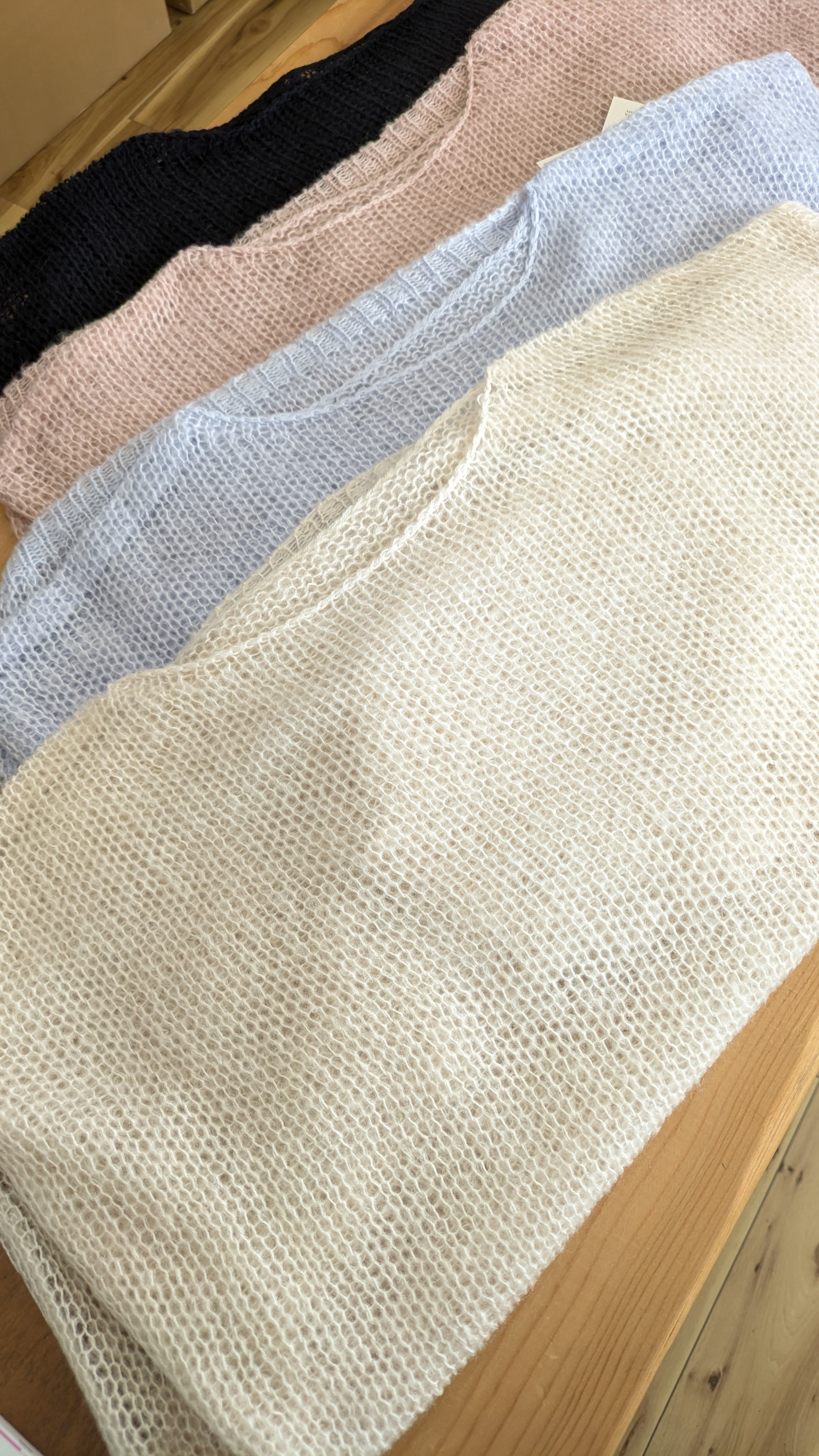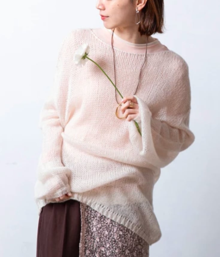 モヘアタッチ ローゲージ シアー ニット クルーネック プルオーバー