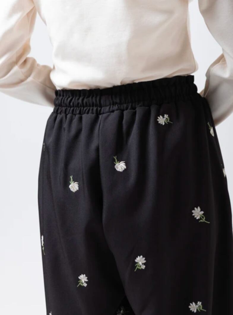 小花柄刺繍 コクーンイージーパンツ