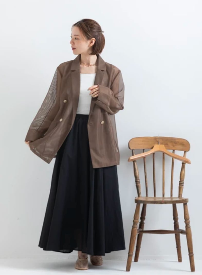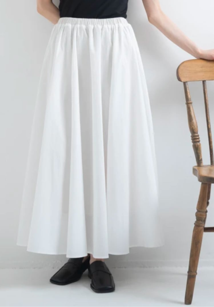 贅沢なボリュームシルエット: 生地をたっぷりと使用し、計算されたギャザー分量で360度どこから見ても美しいフォルムに。気になる下半身を自然にカバーしつつ、女性らしい「華奢見え」を叶えます。