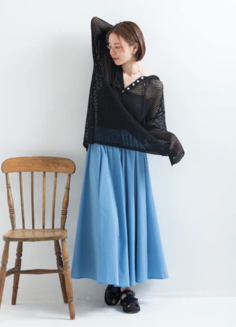 素肌に優しいコットン100%。程よいハリ感があるため、ボリュームシルエットを美しくキープします。通気性も良く、さらりとした肌触りが魅力です。