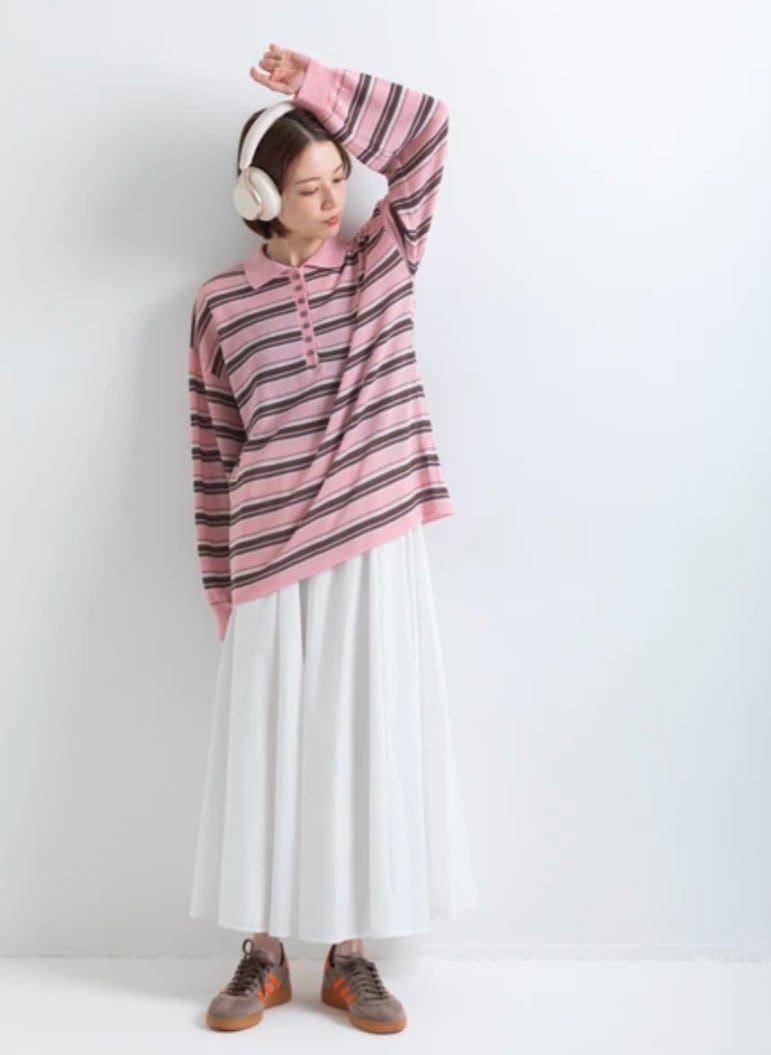洗練されたきれいめコーデ: コンパクトなリブニットやブラウスをインして、メリハリのあるシルエットに。お出かけやランチなど、少し背筋を伸ばしたい日にもぴったりです。