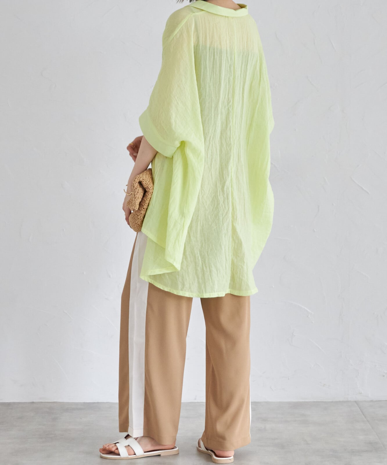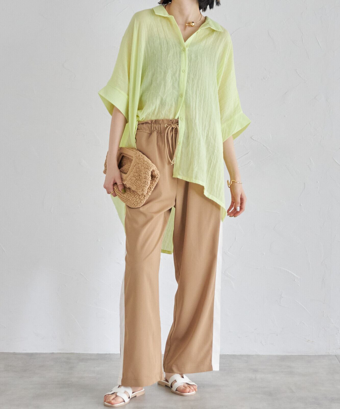 ・とろみある薄い生地でシルエット抜群♪・ウエスト部分はゴムとドロストの紐で楽で履き心地◎・ロゴT-シャツとスニーカーでカジュアルがおススメ