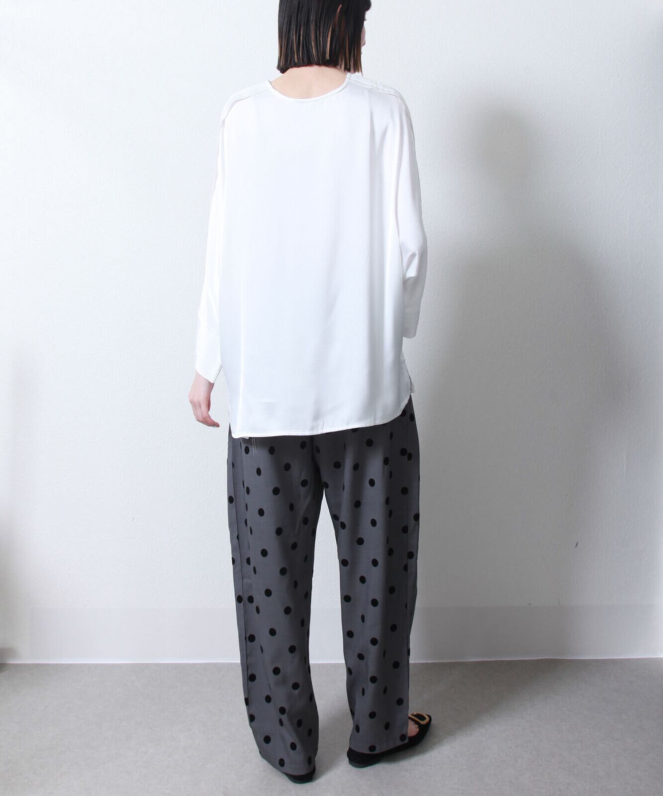 今季人気のドット柄のパンツはカラー(襟)デザインのウエスト部分で更にオシャレ度アップ